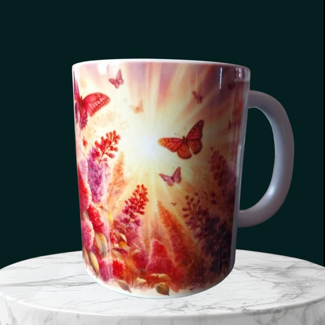 Mug chat aux douces couleurs, papillons