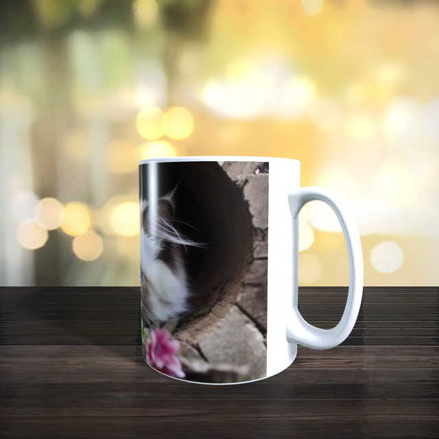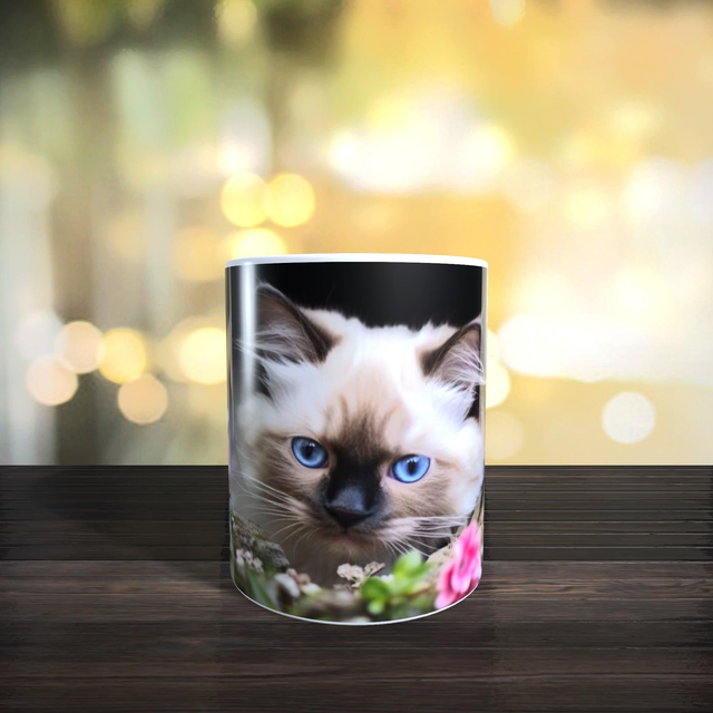 Mug chat mignon yeux bleus.