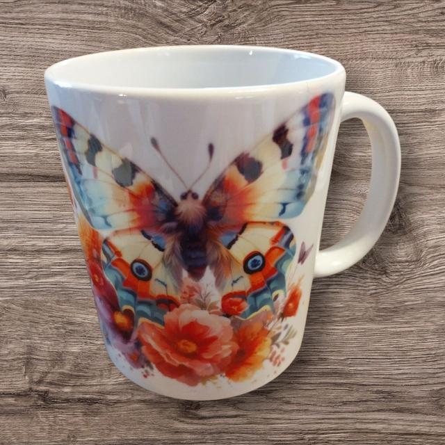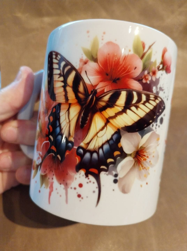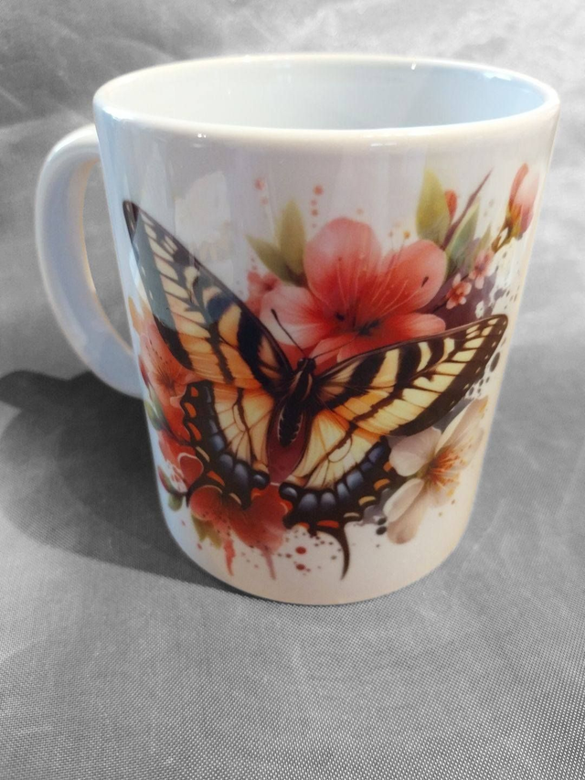 Mug papillons aux jolies couleurs. Les 2 papillons sont sur le mug.