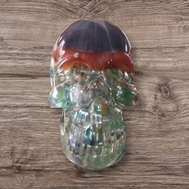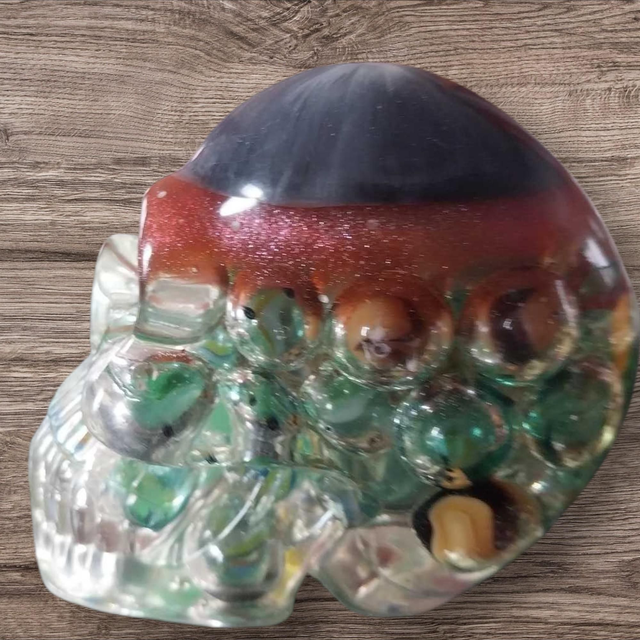 Jolie tête de mort en résine avec billes.